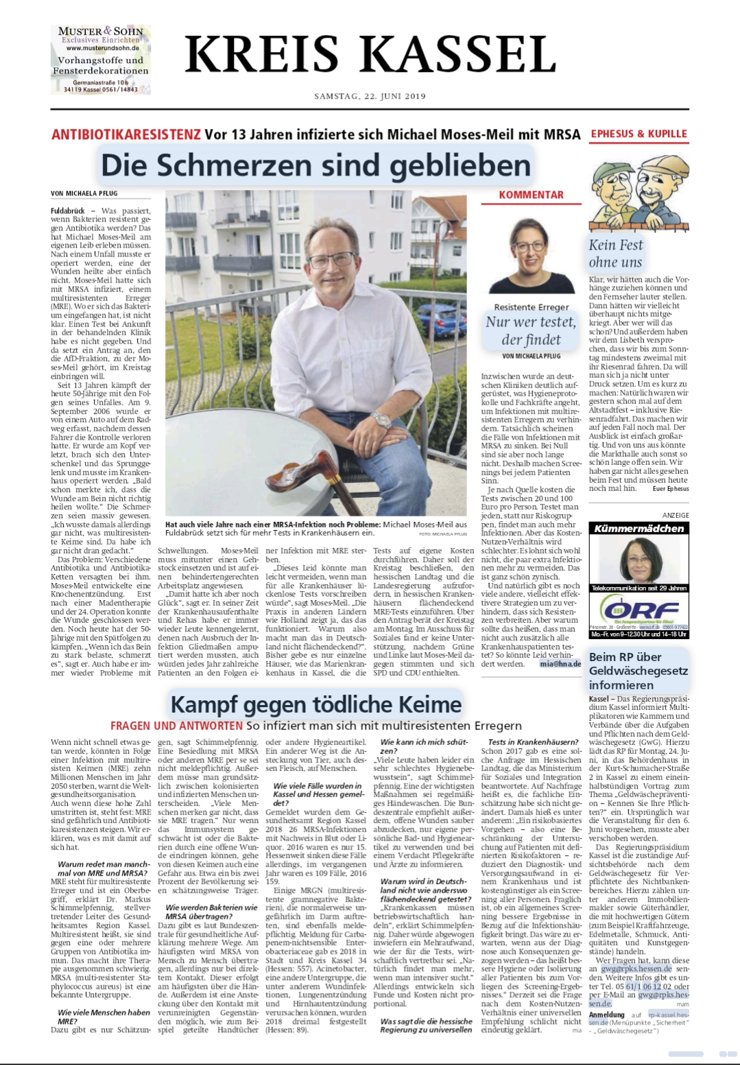 Außerdem sei eine Ansteckung über den Kontakt mit verunreinigten Gegenständen möglich, wie zum Beispiel geteilte Handtücher, so die HNA Zeitung. Desweiteren weißt die Patientenfürsprecherin seit 3 Jahren daraufhin, dass genau diese Hygienemängel in der Lungenfachklinik Immenhausen vorhanden sind und die Handtücher der verschiedenen Patienten sich berühren. Getan hat sich bis dato nichts. Nur die Grünen und die Linken haben sich im Ausschuss für Soziales jeweils mit einer Stimme gegen unseren Antrag ausgesprochen. Die SPD und die CDU haben sich einstimmig enthalten. „Wir machen doch alles in den Krankenhäusern was wollen wir machen wenn die Patienten die „Multiresistenten Keime“ in die Krankenhäuser tragen“ so die Kritiker.