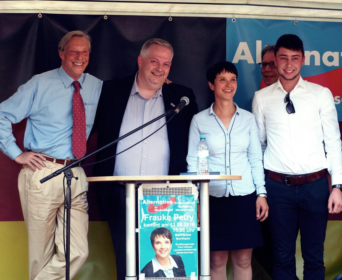 wer mich persönlich kennt der weiß, dass ich sehr gut abwäge, inwieweit Demonstrationen eher schaden und inwiefern sie der AfD eher Nutzen bringen. Am vergangenen Sonntag erlebten wir in Northeim eine Freiluft-Kundgebung, die seinesgleichen sucht. Vor über 250 Menschen hatte ich die Ehre, gemeinsam mit unserer Bundessprecherin Dr. Frauke Petry, dem Landesvorsitzenden der AfD Niedersachsen Paul Hampel und dem Kreisverbandsvorsitzenden der AfD Northeim, Maik Schmitz zu sprechen.